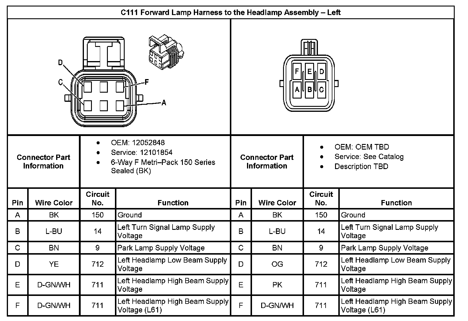 C111 Forward Lamp Harness To The Headlamp Assembly - Left: