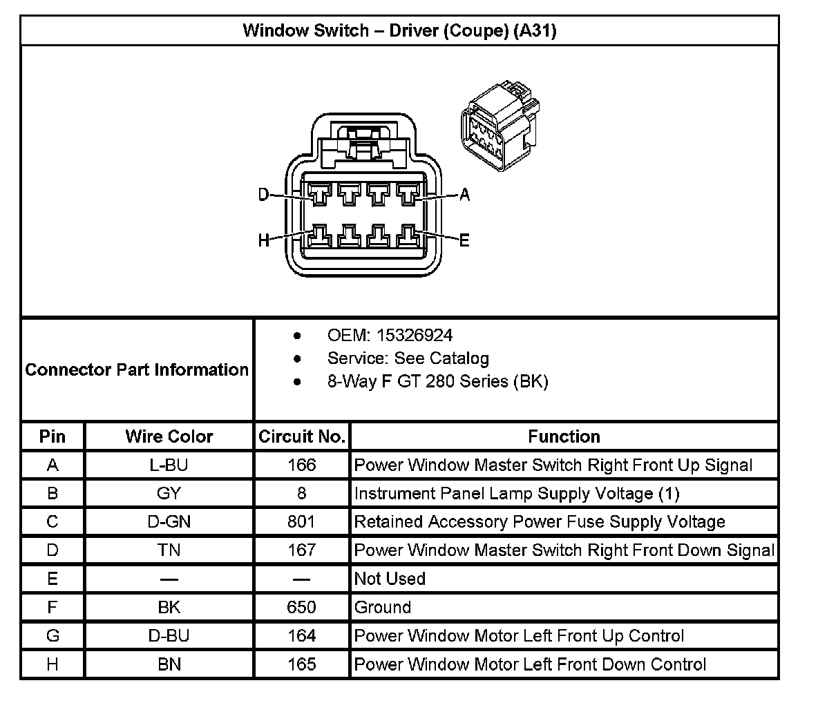 Window Switch - Driver (Coupe) (With RPO Code A31):
