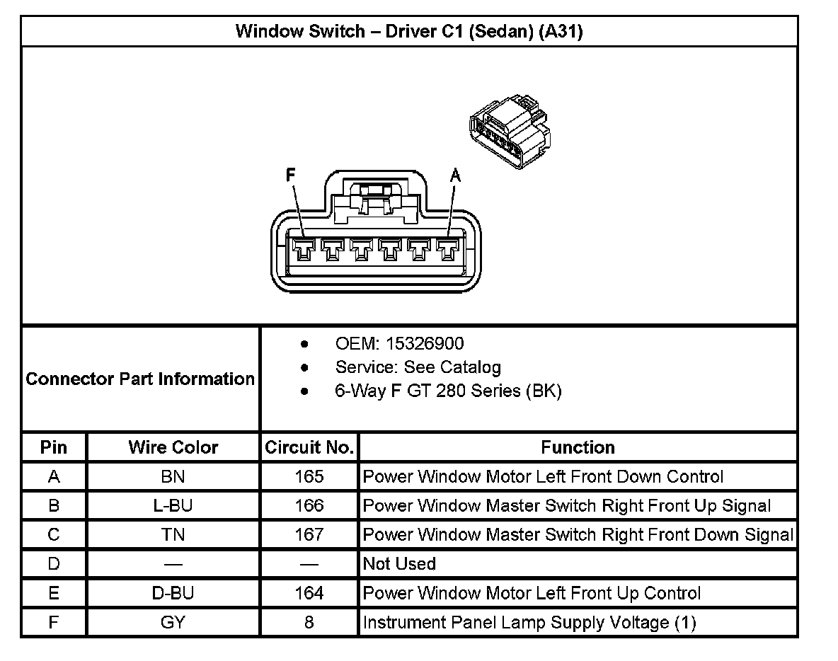 Window Switch - Driver C2 (Sedan) (With RPO Code A31):