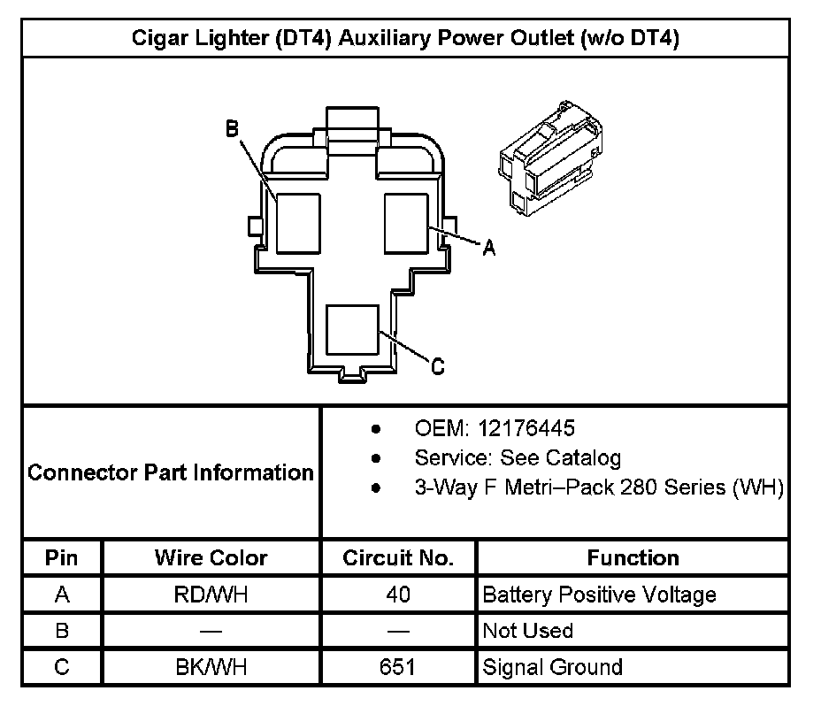 Cigar Lighter (With RPO Code DT4) Auxiliary Power Outlet (Without RPO Code DT4):
