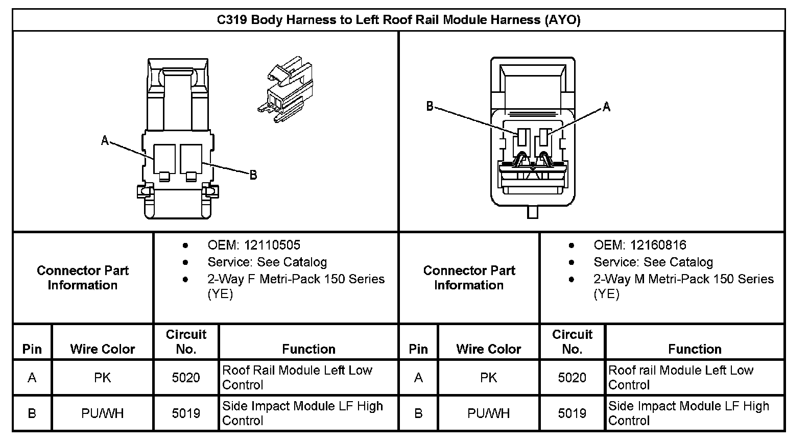 C319 Body Harness To Left Roof Rail Module Harness (With RPO Code AYO):