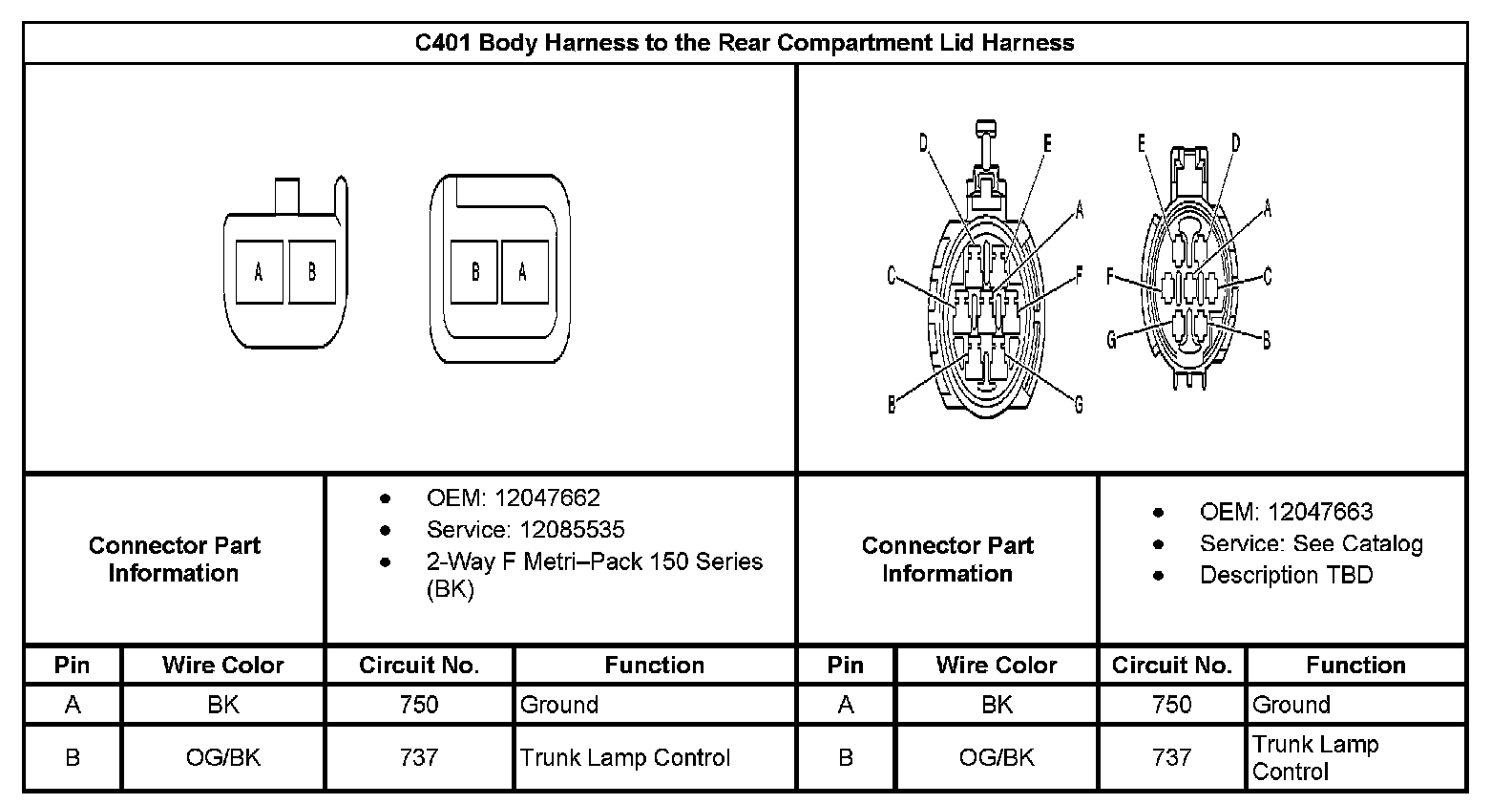 C401 Body Harness To The Rear Compartment Lid Harness: