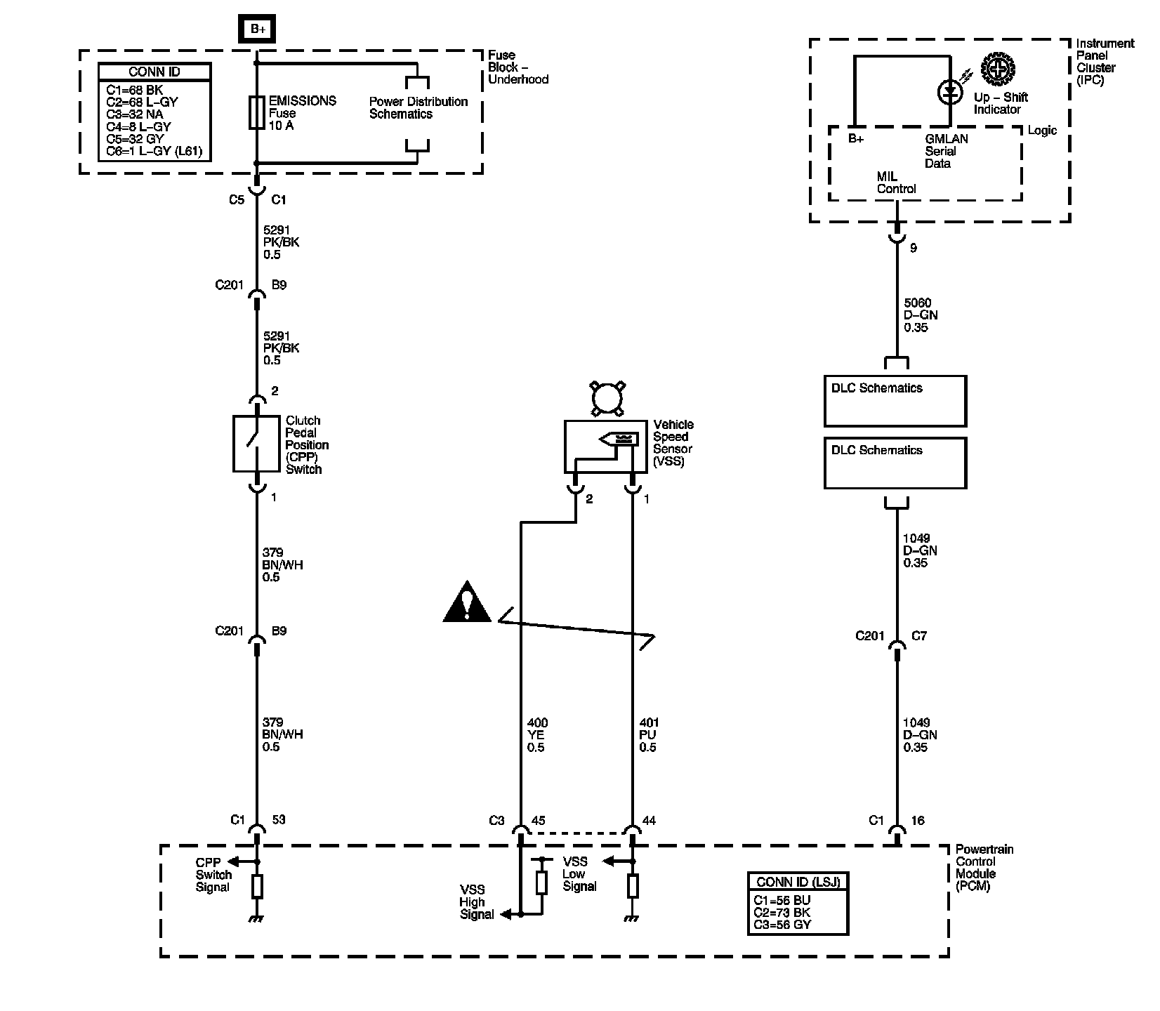 The locations for the Connectors, Grounds, Splices, and Grommets shown within these diagrams can be found via their numbers at Vehicle Locations.