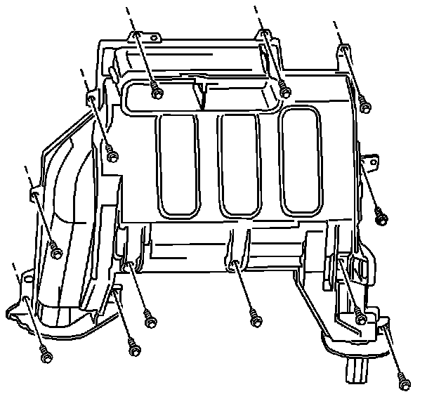 IMPORTANT: Make certain that the heater core cover is properly positioned and is fully seated on the HVAC module before installing the screws. Be sure to install all heater core cover screws.