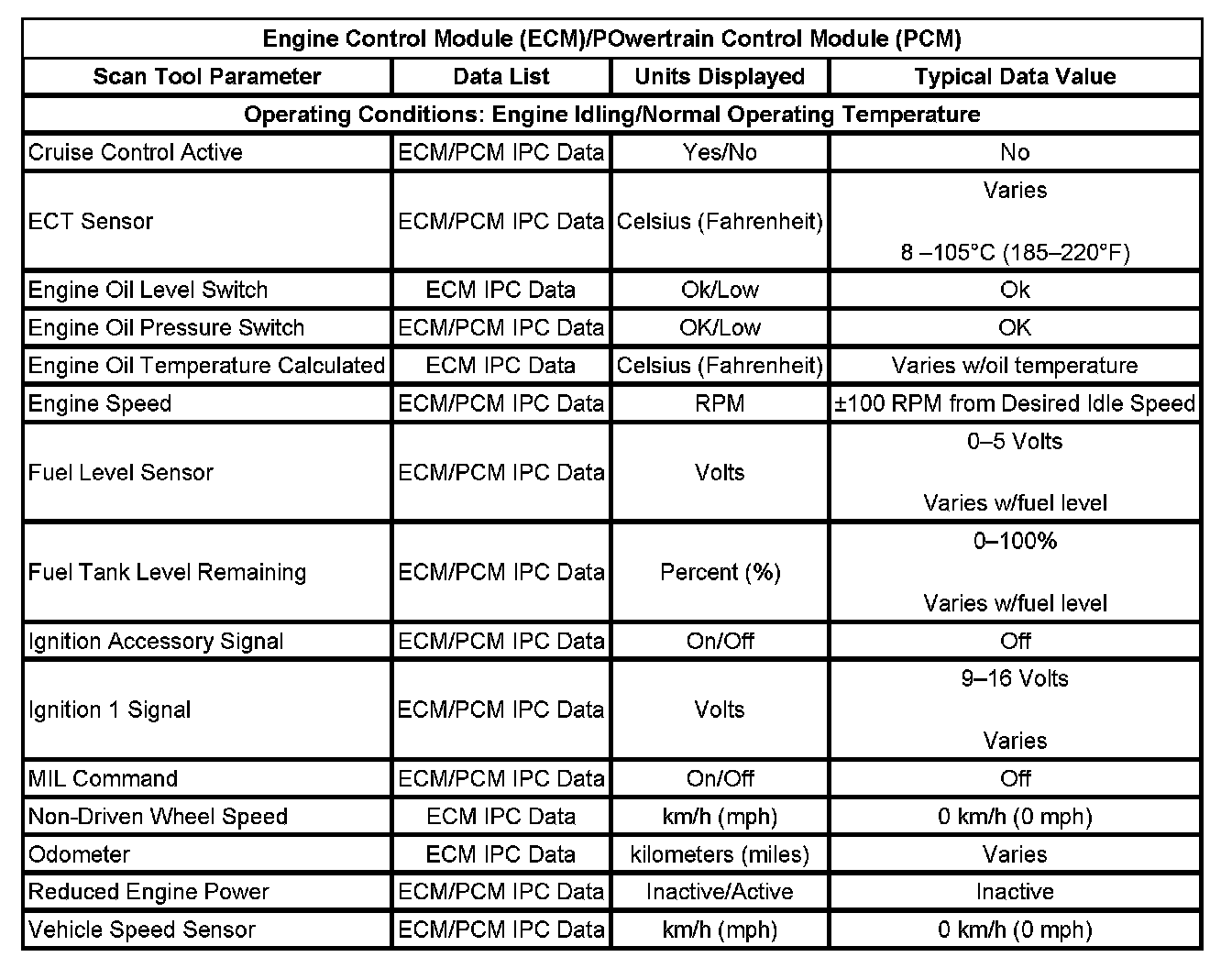 Scan Tool Data List