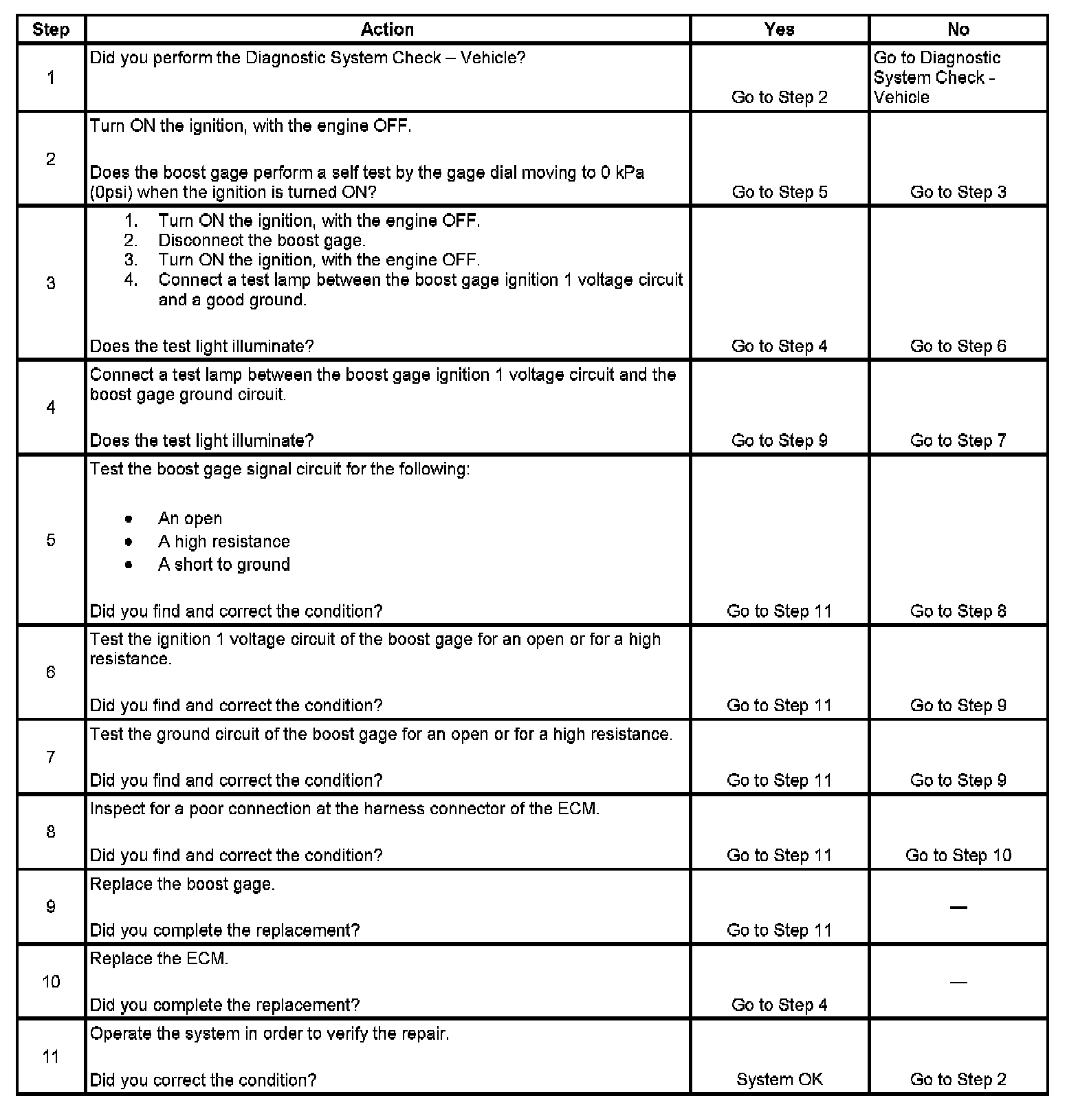 Boost Gage Inoperative