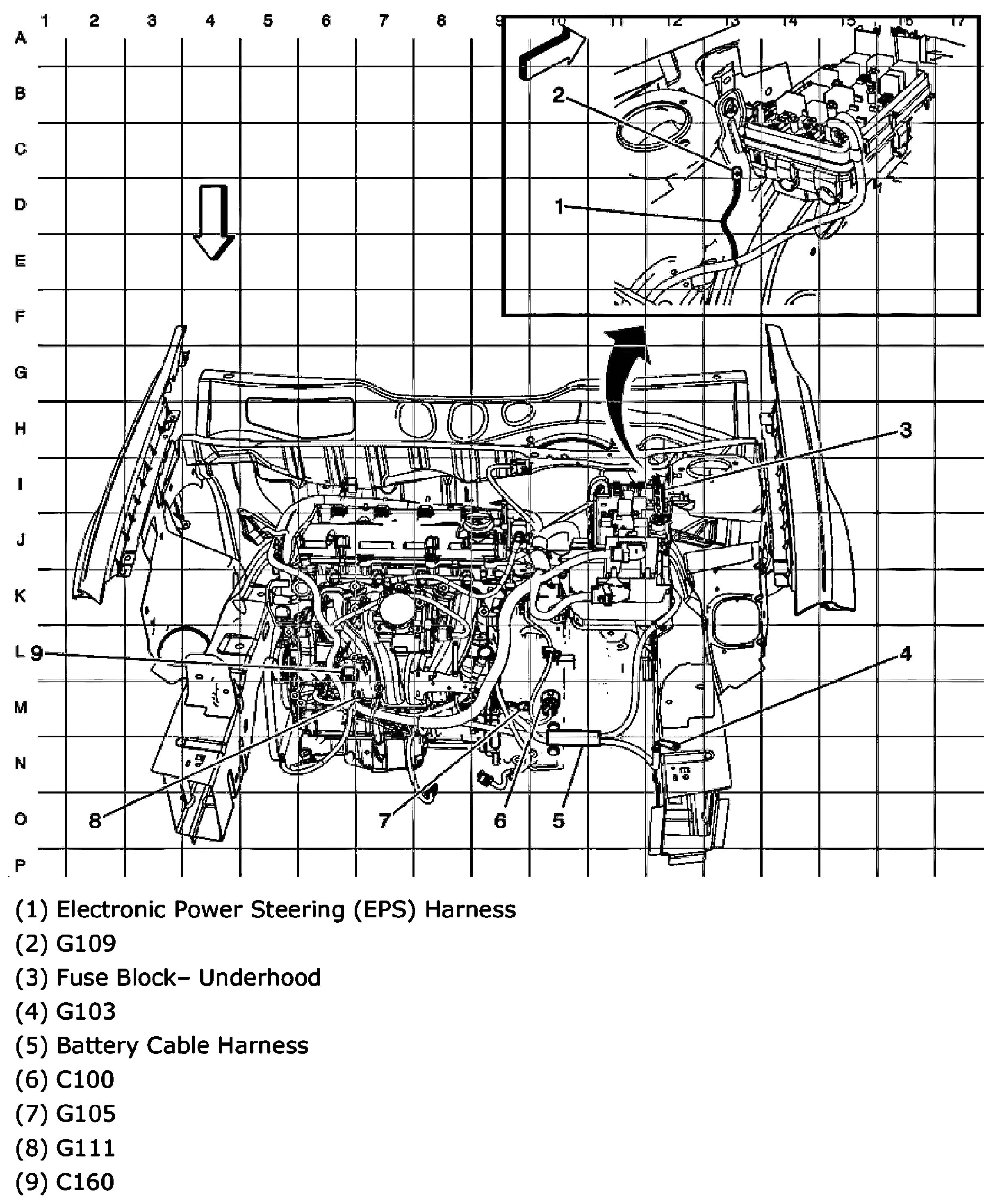 (CKT 1150) In the rear of the engine compartment on the left strut tower at the base of the hood support.