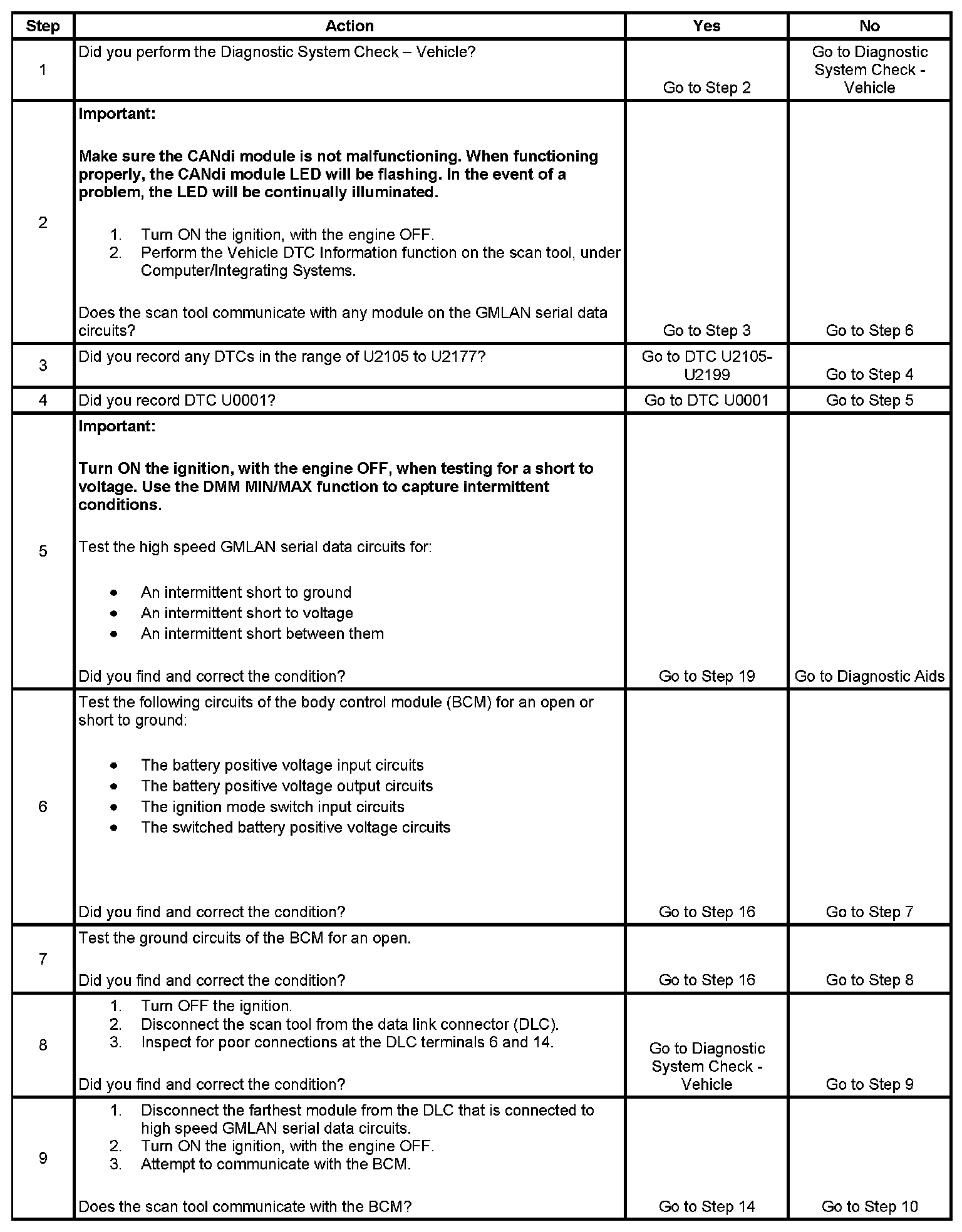 2. A partial malfunction in the high speed GMLAN serial data circuits uses a different procedure from a total malfunction of the high speed GMLAN data circuits.
