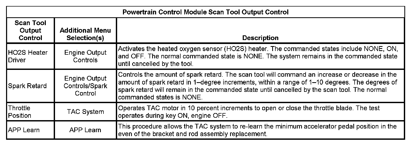 Scan Tool Output Controls