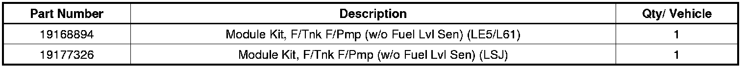 - If the new fuel pump module part number module was 19168892, 19168893, 19168894, or 19177326, no further action is required.