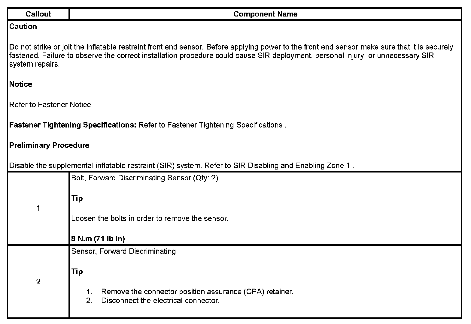 INFLATABLE RESTRAINT FRONT END SENSOR REPLACEMENT