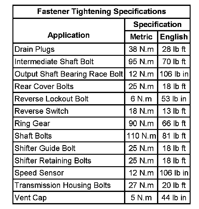 Fastener Tightening Specifications: