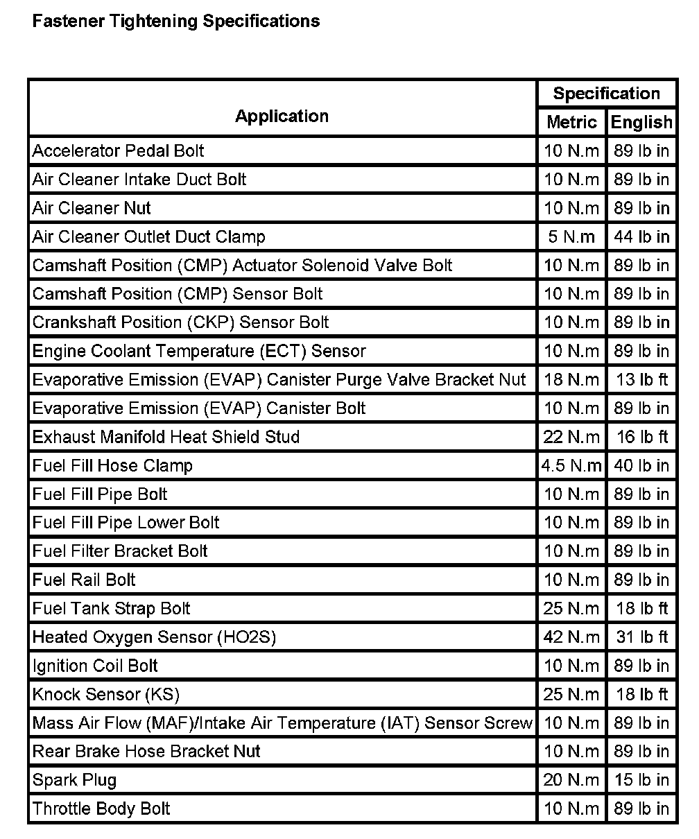 Fastener Tightening Specifications: