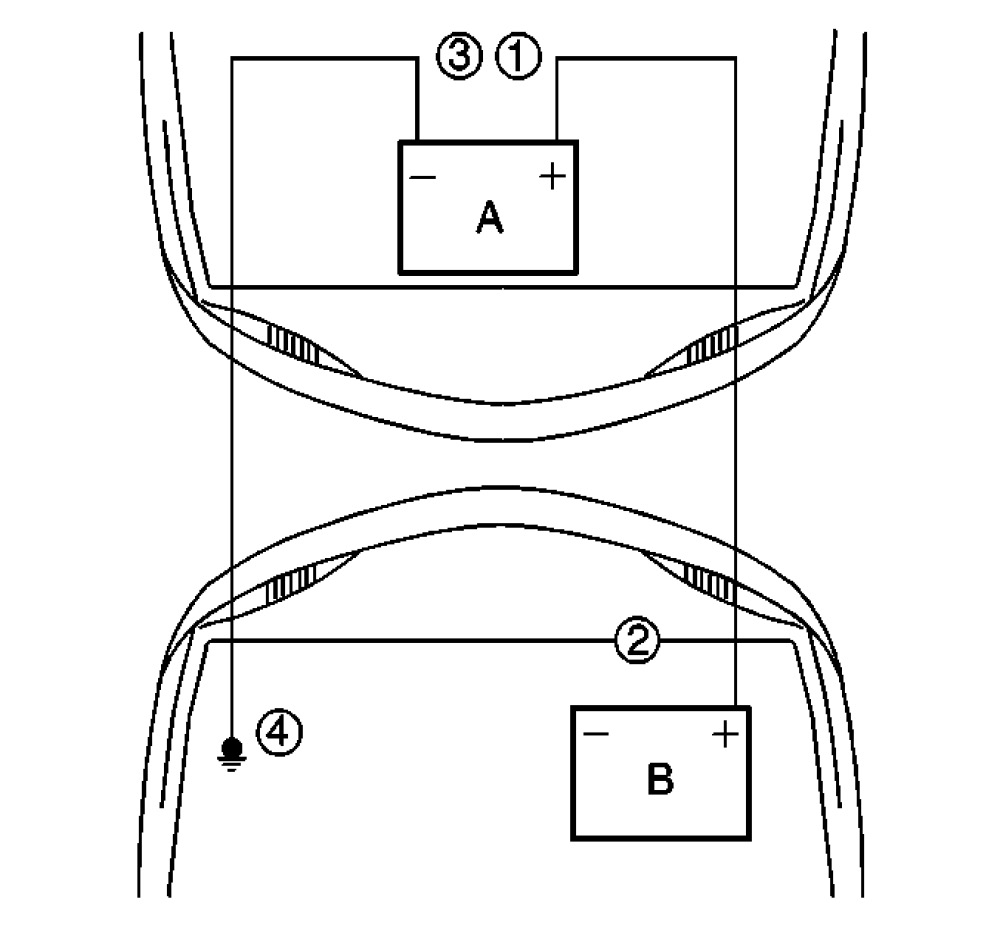 11. The black negative (-) cable must be first disconnected from the vehicle that was boosted (4).