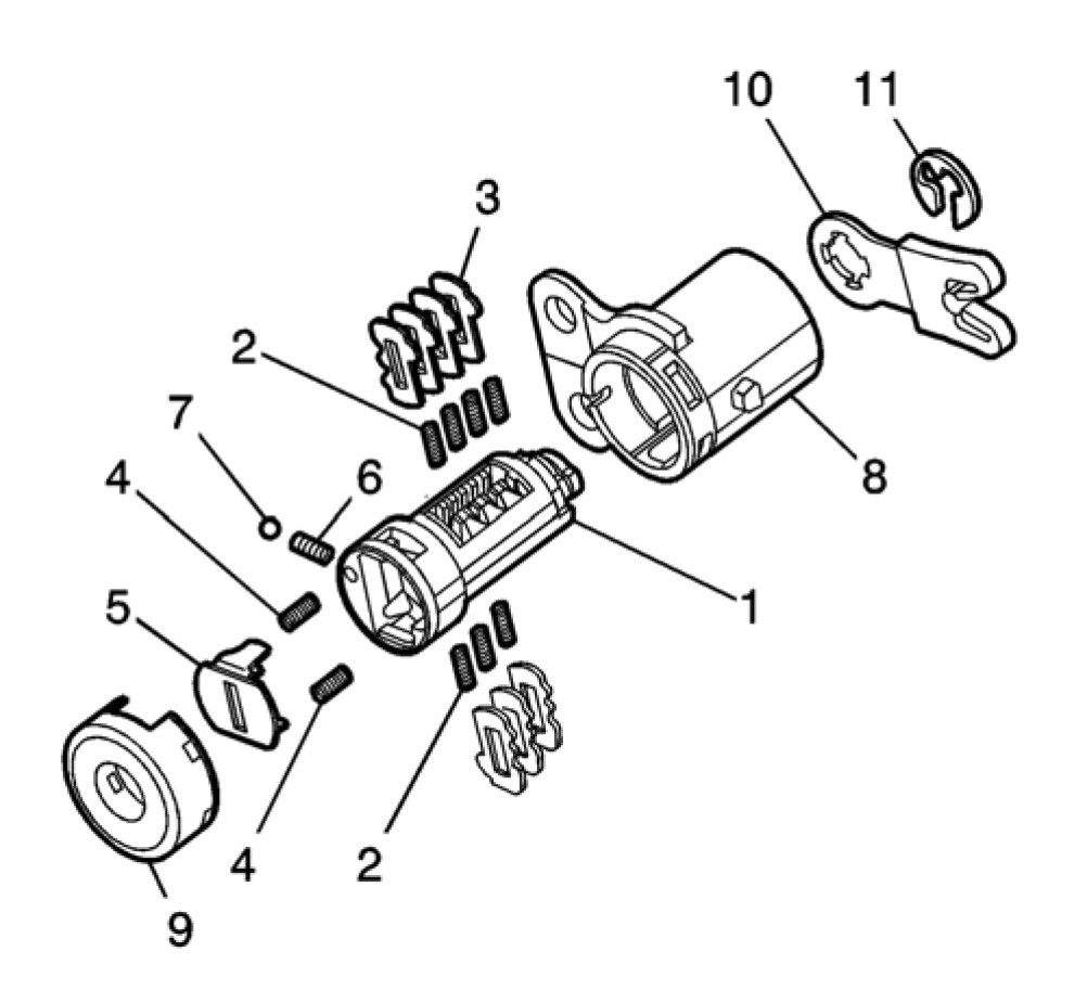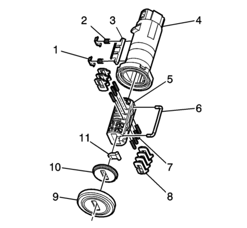Important: The ignition lock cylinder tumblers (3) are not self-retaining and must be held in place if the key is not fully inserted into the lock cylinder.