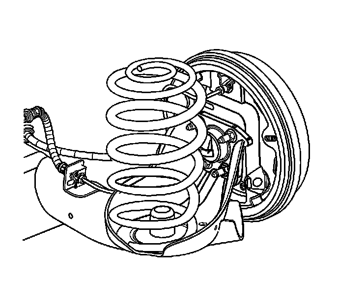 The coil springs support the weight of the vehicle in the rear. Two spring rates exist on this vehicle, base and up-level, depending on the suspension option code. Rubber insulators isolate the coil spring at the upper and lower spring seat.