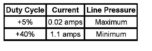 When vehicle operating conditions are appropriate to apply the TCC, the TCM immediately increases the duty cycle to approximately 42 percent. The TCM then ramps the duty cycle up to approximately 90 percent to achieve full TCC apply pressure. The rate at which the TCM increases the duty cycle controls the TCC apply. Similarly, the TCM also ramps down the TCC solenoid duty cycle to control the TCC release.