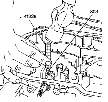 Install the manual shaft pin (803) into the case. Use the J 41229 or equivalent.