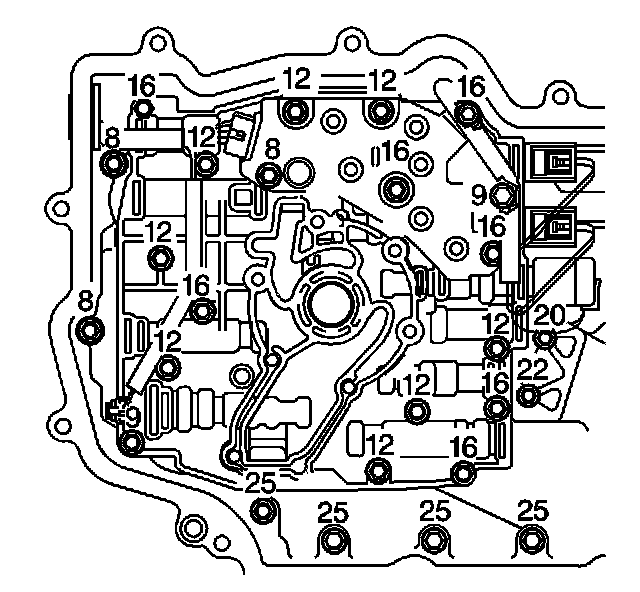 6. Install the 18 control valve body assembly bolts.