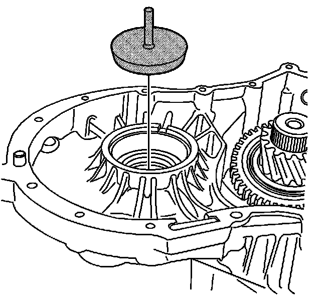 10. Install the J 44388-2 into the left differential side bearing race. Ensure that the J 44388-2 is fully seated into the left differential side bearing race.