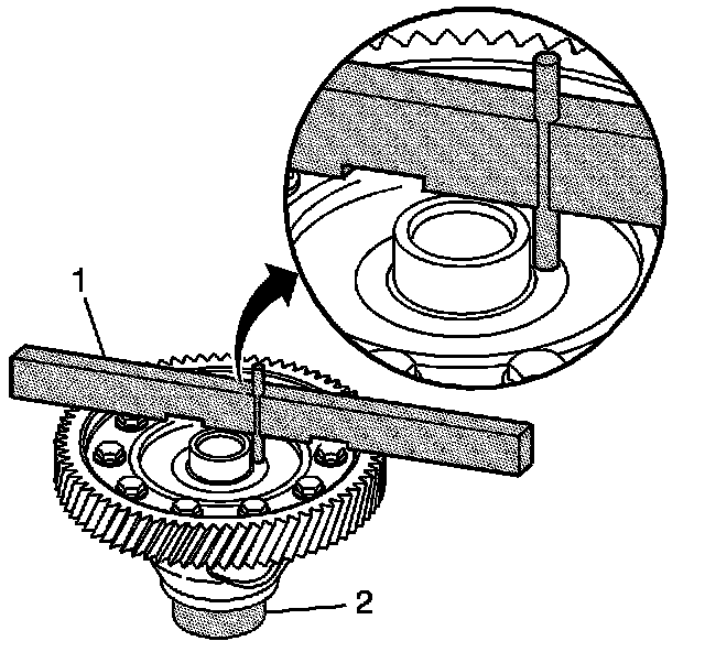 19. Place the J 44388-1 (1) across the face of the ring gear.