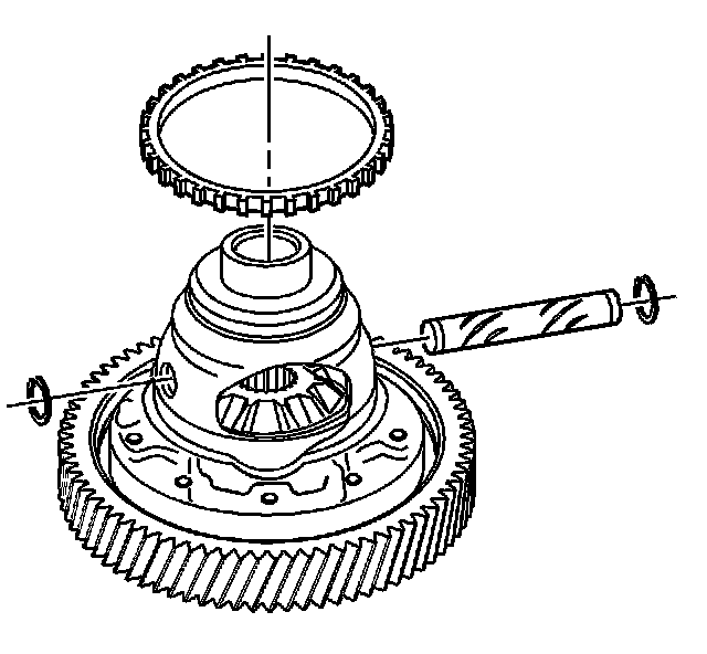 Remove and discard both the differential pinion shaft retaining rings and remove the differential pinion shaft.