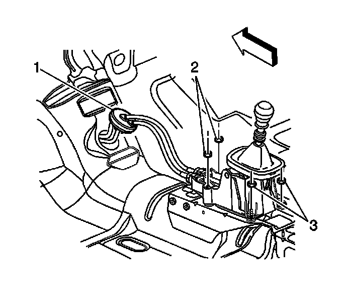 4. Remove the 2 rear mounting nuts (3) and the shifter.