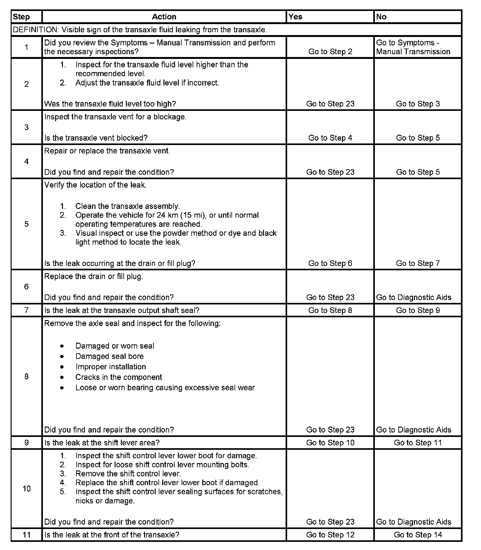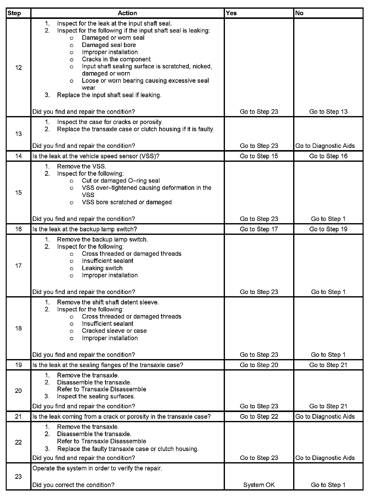 Using the incorrect type of transaxle fluid may affect the sealing ability of the seals. Ensure the use of the correct type of transaxle fluid. The incorrect type of sealer may not be compatible with the transaxle fluid or may not have the correct characteristics for sealing the affected components. Ensure the use of the correct type of sealers.