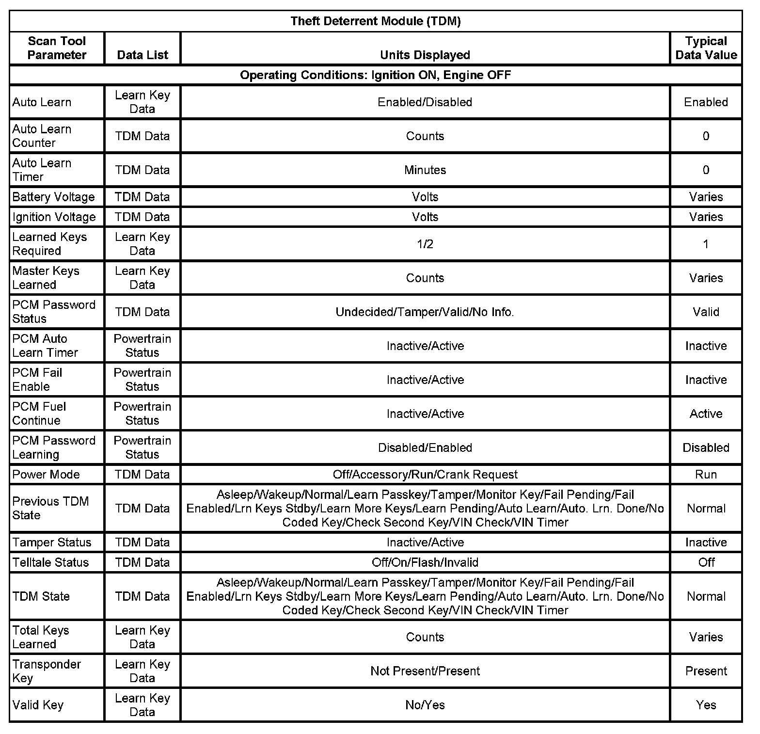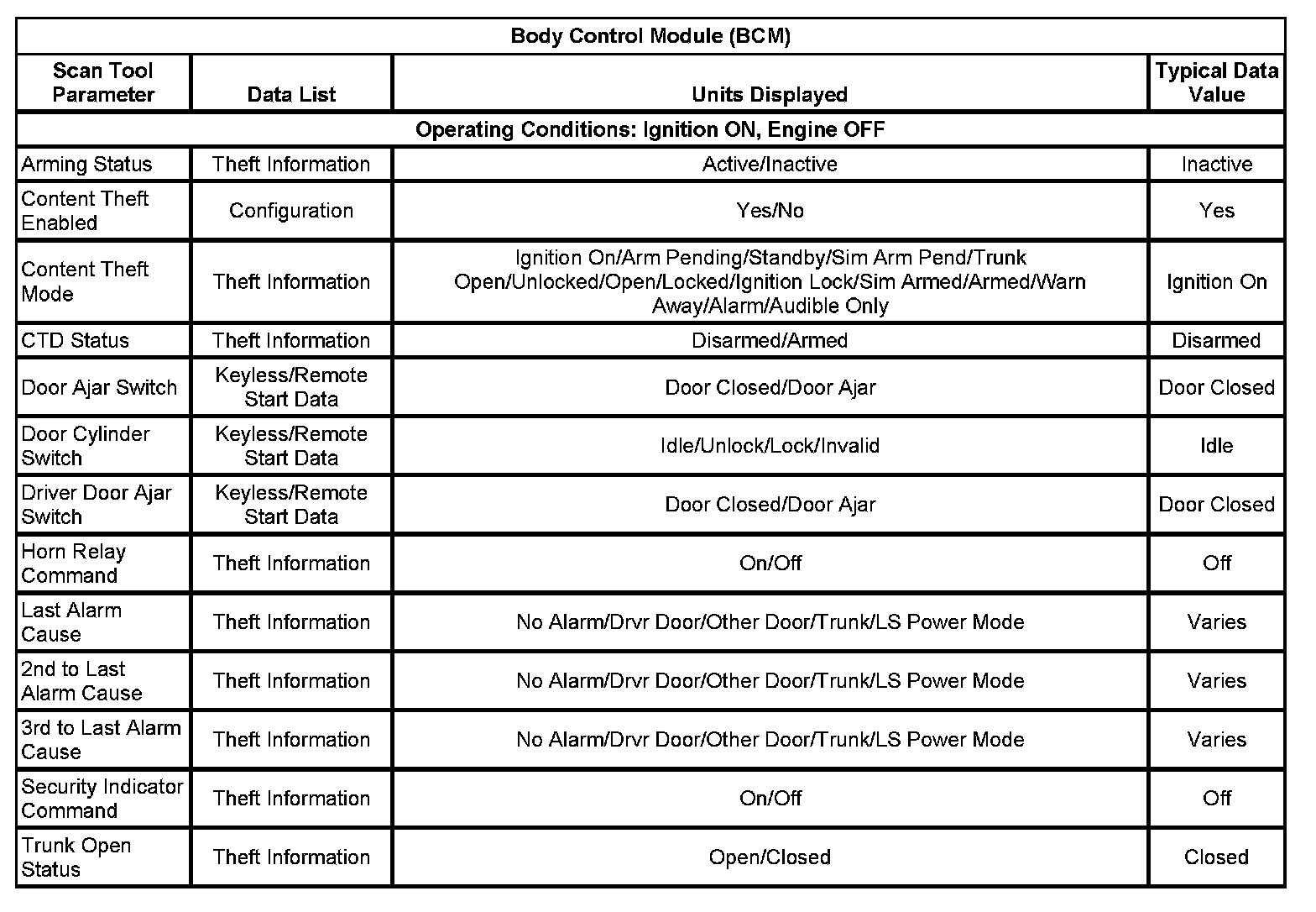 Scan Tool Data List