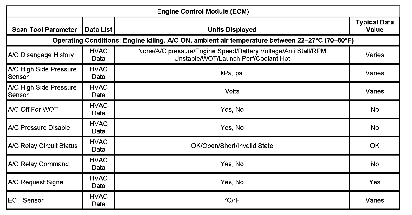 Scan Tool Data List