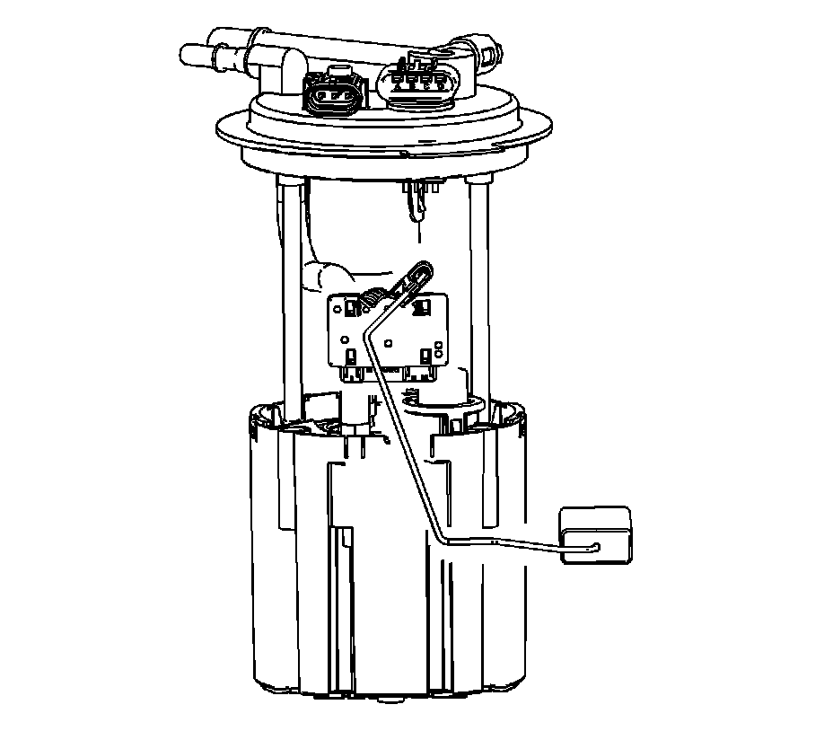 2. Depress the retaining tab on the fuel level sensor and begin to slide the sensor away from the pump module.