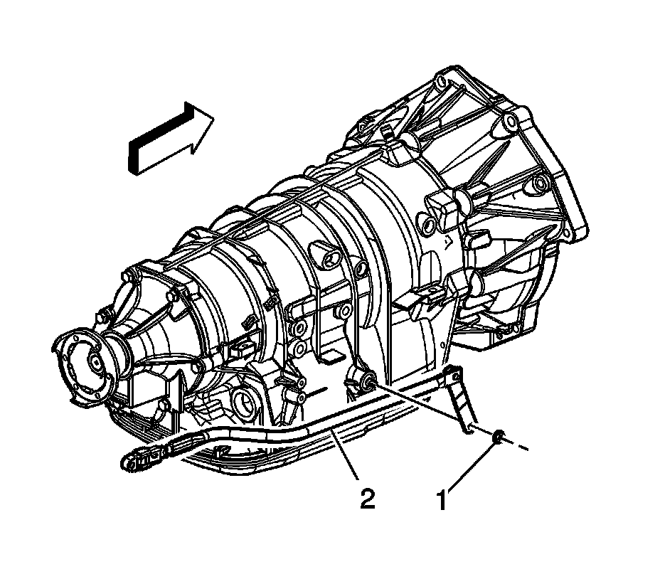 12. Remove the manual shift shaft detent spring (1) and bolts (2).