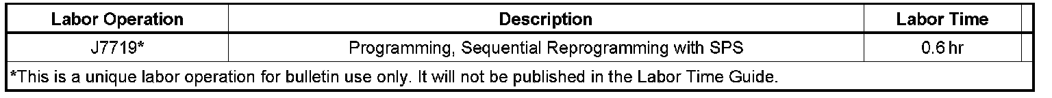 Currently, the Service Programming System does not generate a warranty claim code after a sequential programming event, when both the IPC and ECM are programmed in the same session. Until the proper codes are generated by the SPS, please use ZZ999 to indicate a sequential programming event. A Warranty Claim Code of "ZZ999" must be submitted on all warranty claims in which the vehicle was reprogrammed.