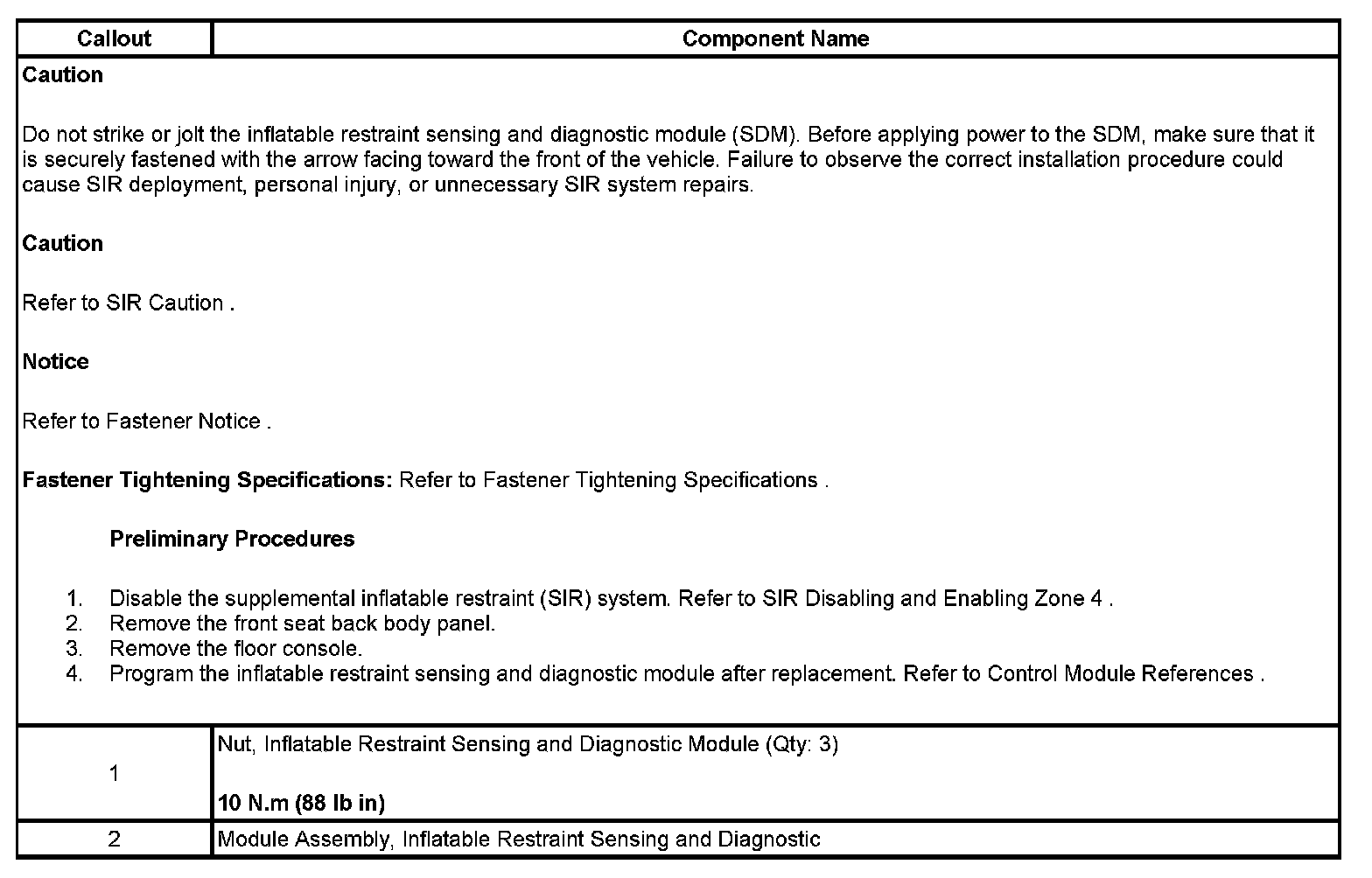INFLATABLE RESTRAINT SENSING AND DIAGNOSTIC MODULE REPLACEMENT