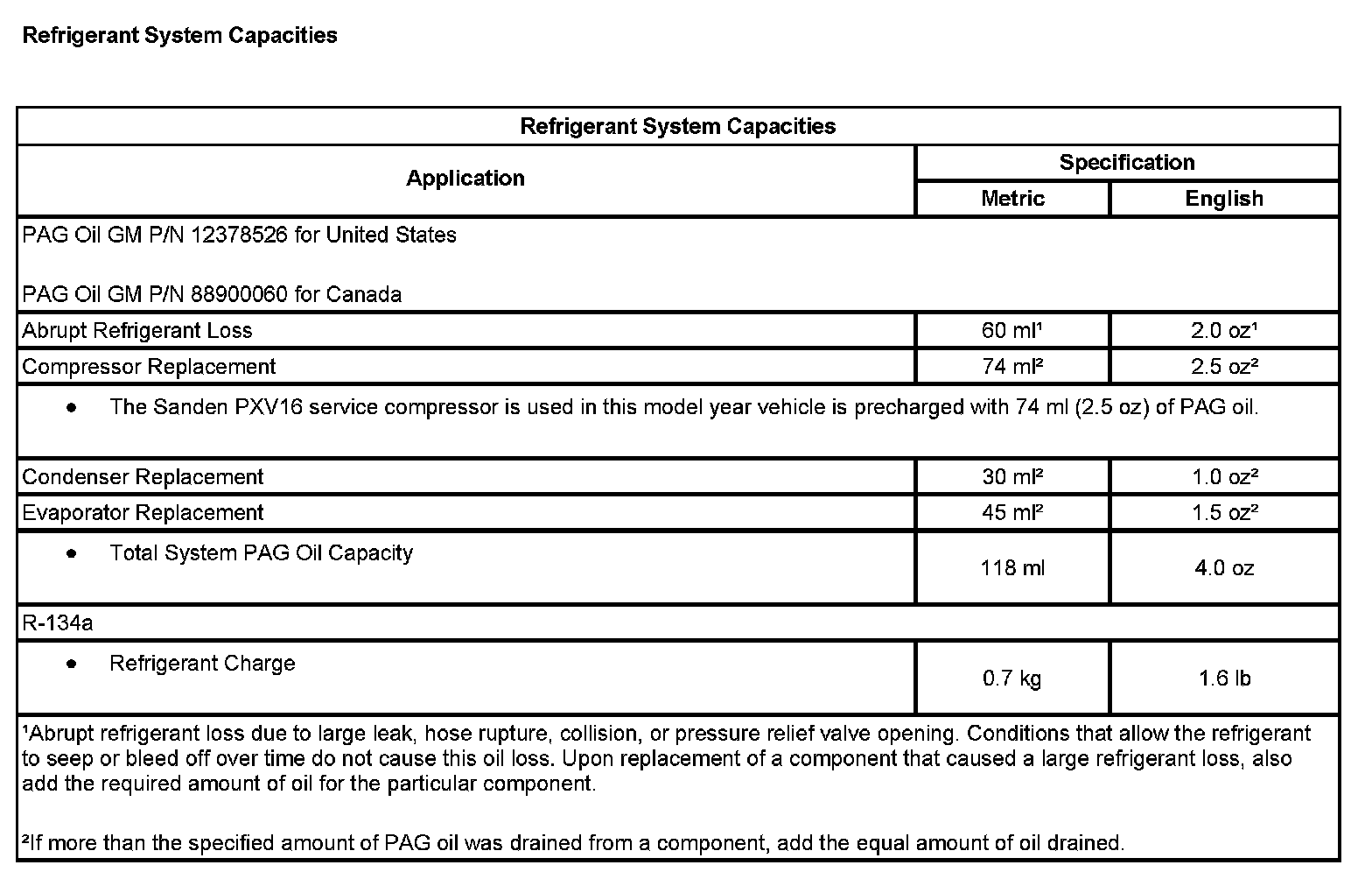 Refrigerant System Capacities: