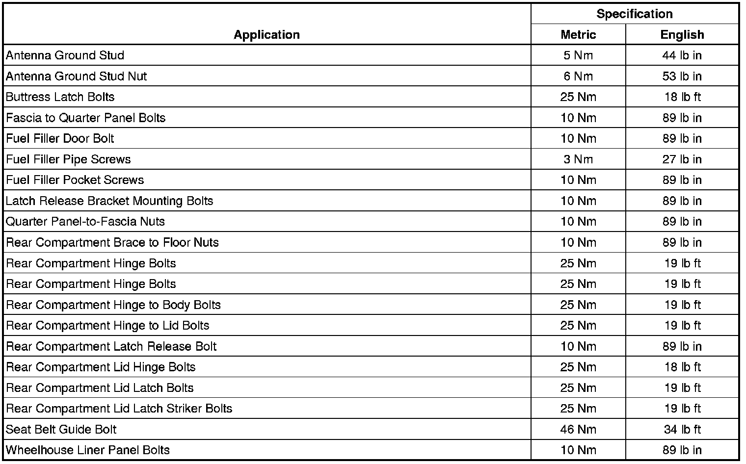 Fastener Tightening Specifications