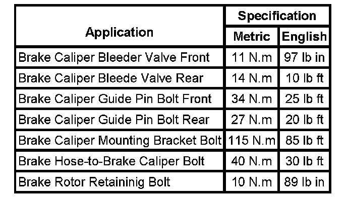 Fastener Tightening Specifications:
