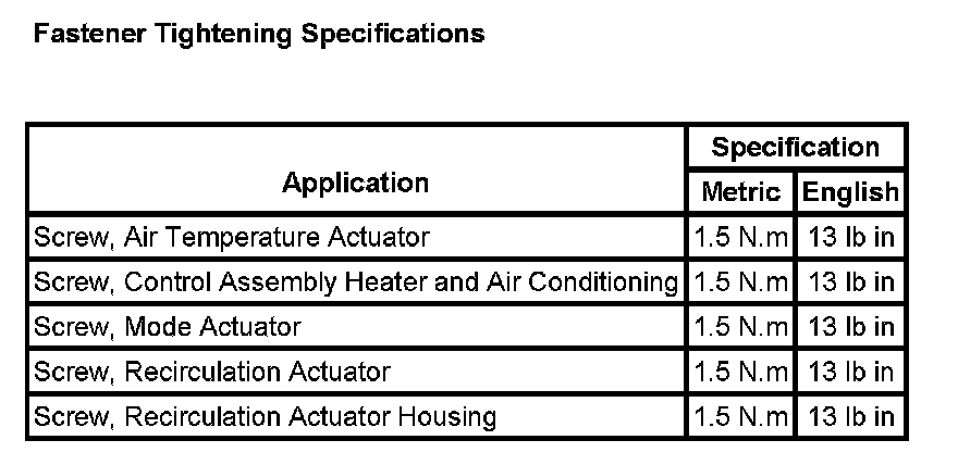 Fastener Tightening Specifications:
