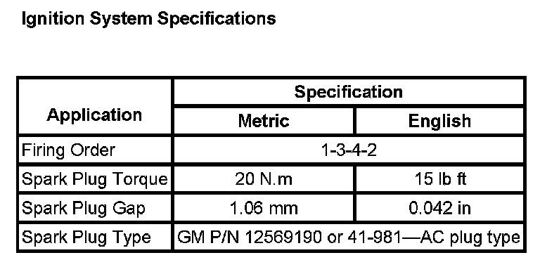Ignition System Specifications: