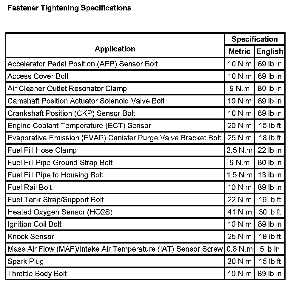 Fastener Tightening Specifications:
