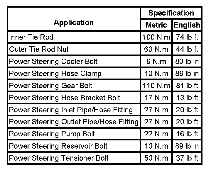 Fastener Tightening Specifications: