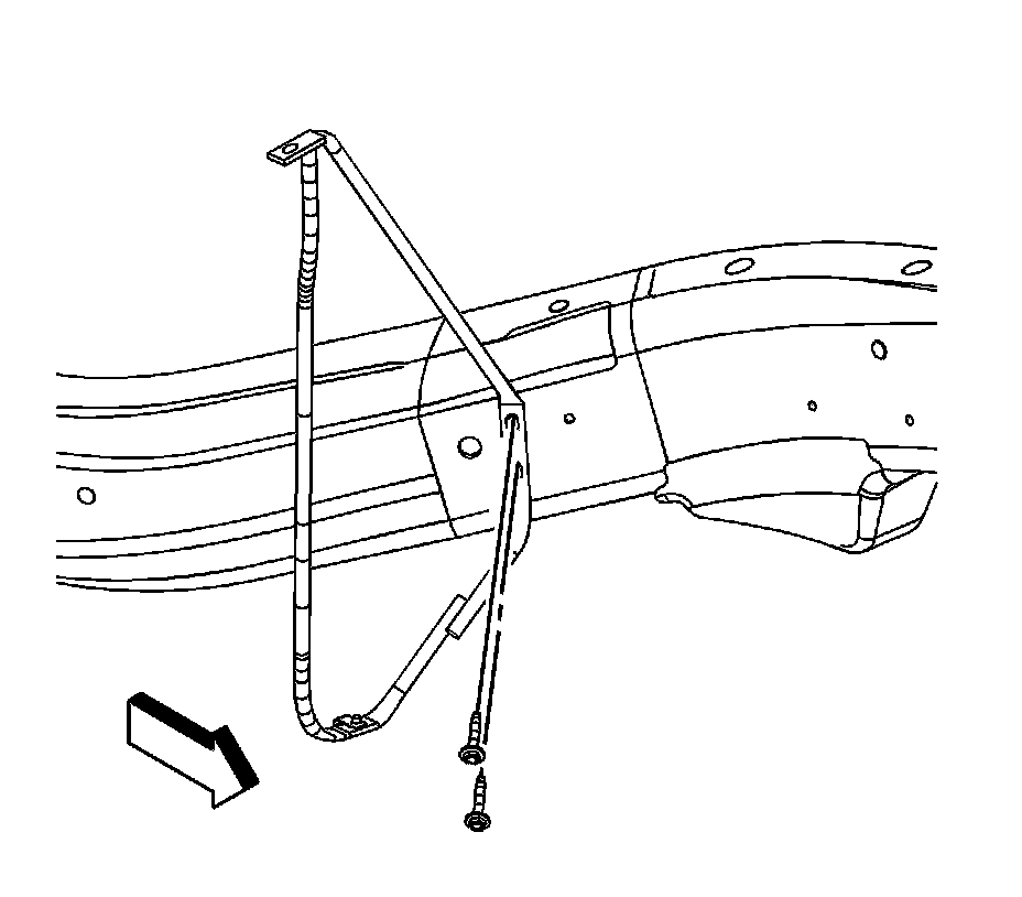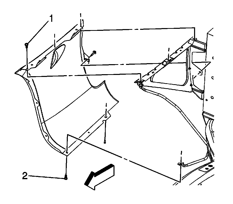5. Install the front fender to front fender rear bracket upper (1) and lower (2) bolts.