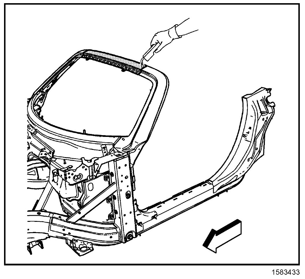 4. Note the location and remove the sealers and anti-corrosion materials from the repair area, as necessary. Refer to Anti-Corrosion Treatment and Repair.