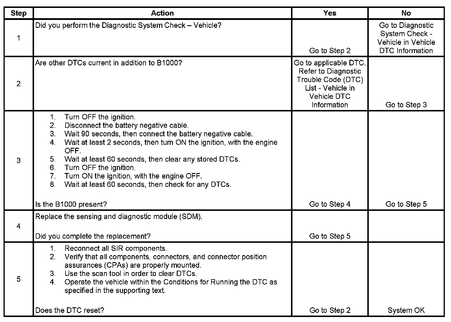DTC B1000 Internal SDM Failure