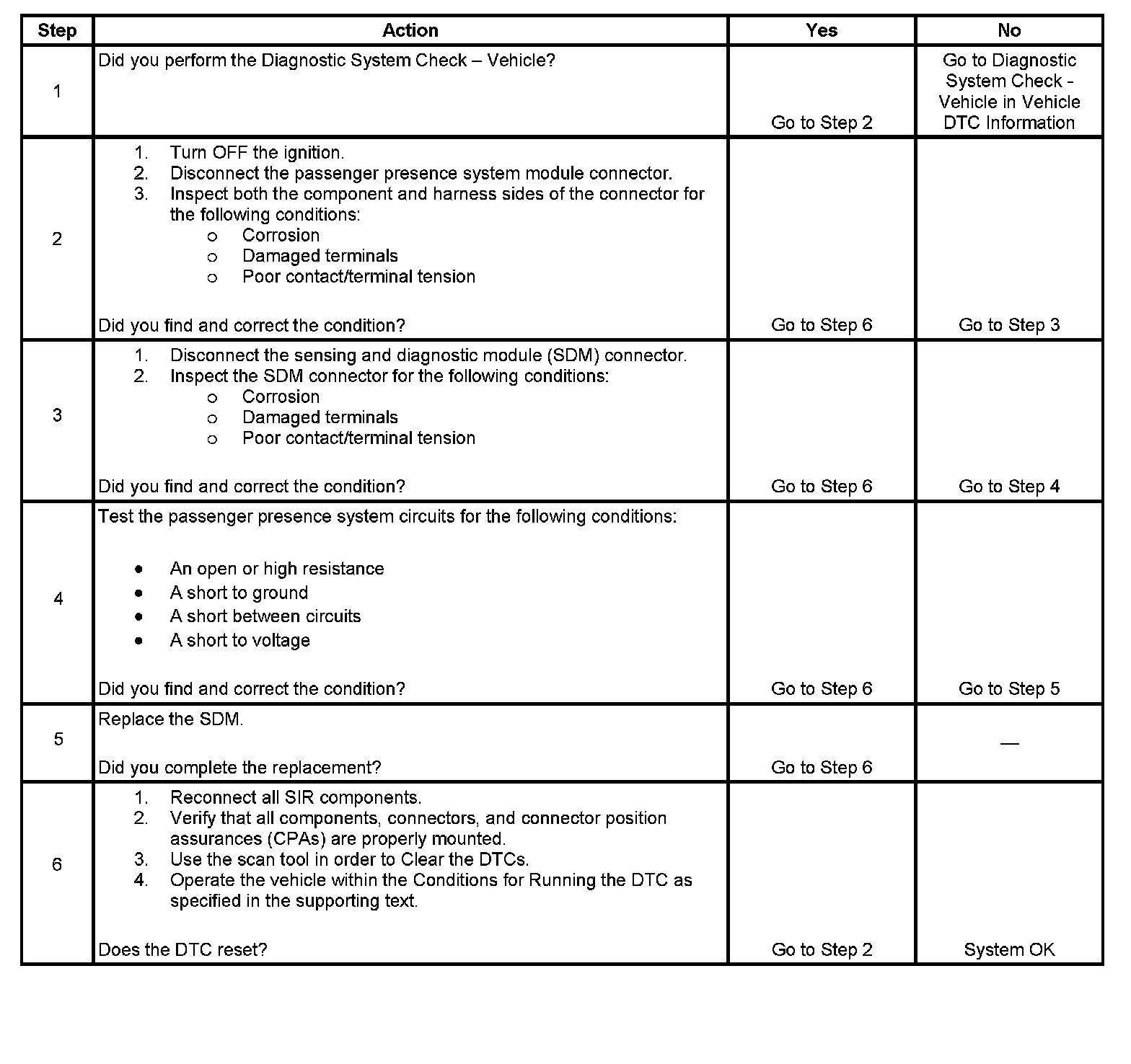 The inflatable restraint passenger presence system circuit consists of the inflatable restraint sensing and diagnostic module (SDM) and the passenger presence system (PPS). The PPS is used by the SDM to determine whether or not the instrument panel (I/P) module, side impact module - RF and seat belt pretensioner - RF should be deployed. If the SDM detects a malfunction within the PPS circuit, a DTC will be set.