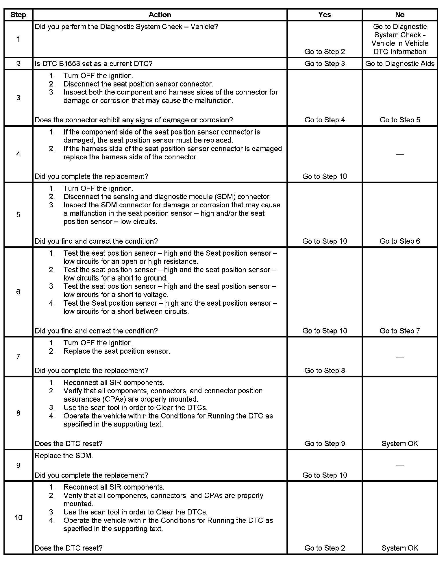 8. This step tests to see if the malfunction is caused by the seat position sensor.