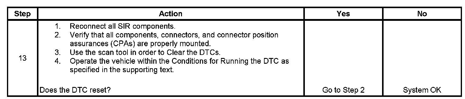 7. This step tests to see if the malfunction is caused by the inflatable restraint side impact module.