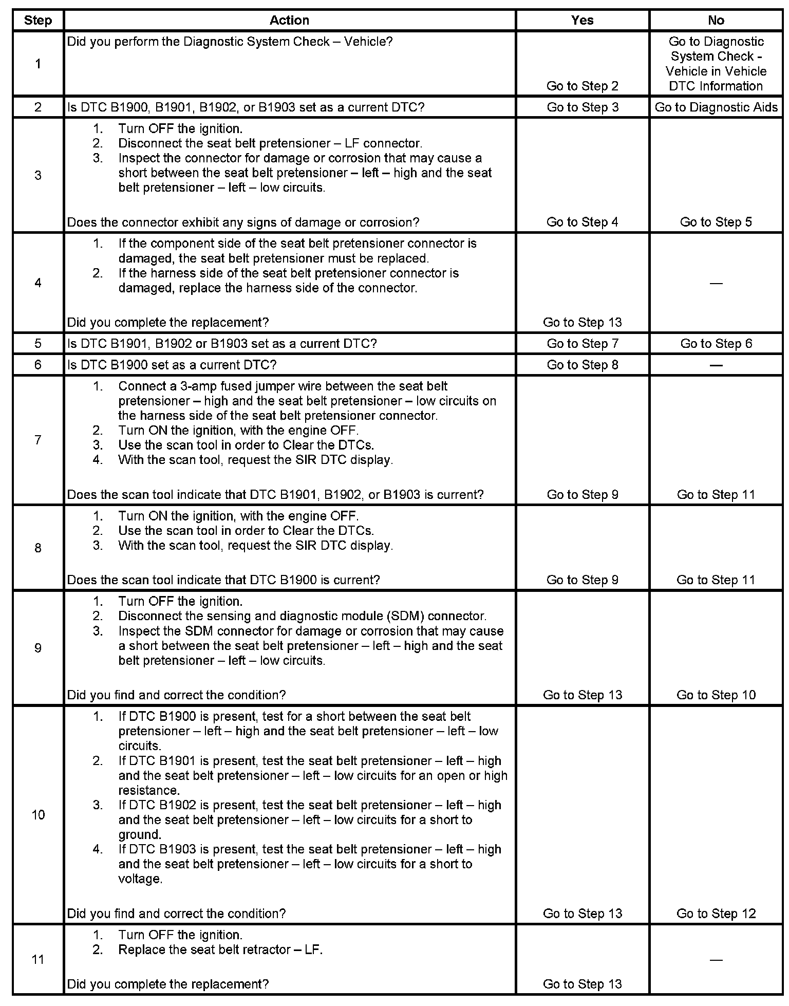 - DTC B1900 will set when the SDM detects a low resistance condition in the seat belt pretensioner - LF deployment loop.