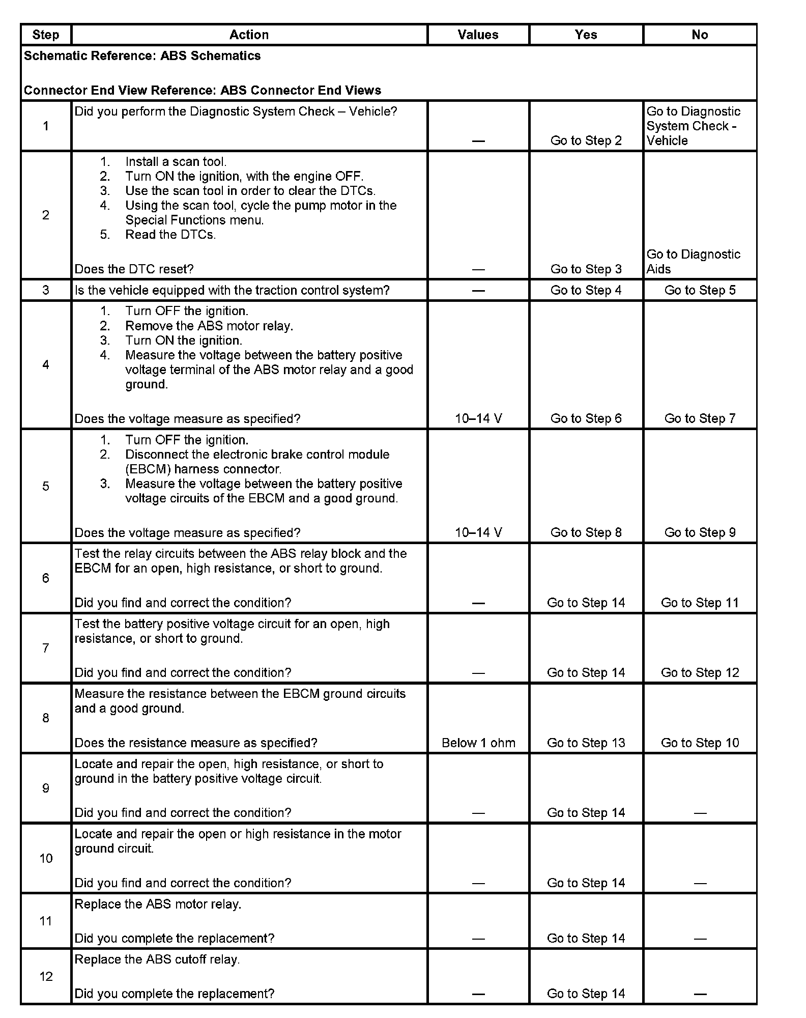 6. This step tests the relay circuits between the ABS relay block and the EBCM for an open, high resistance, or short to ground.