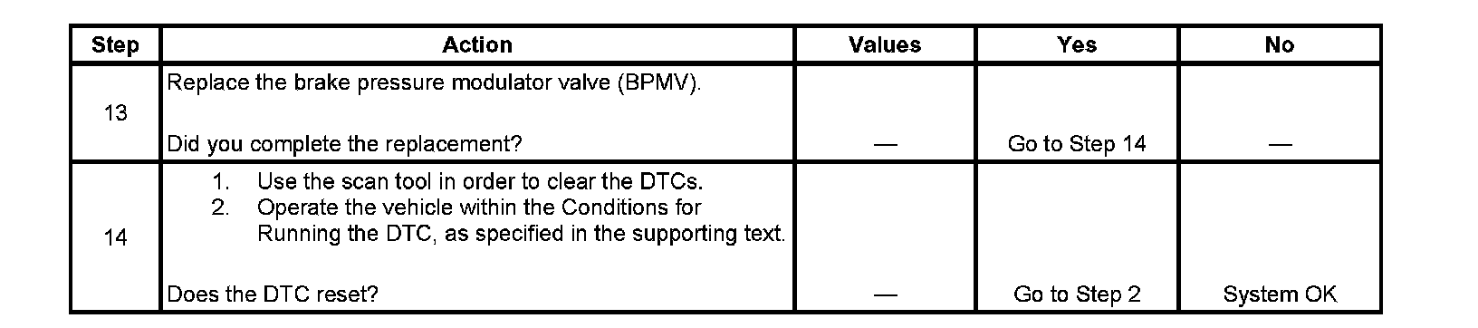 The numbers below refer to the step numbers on the diagnostic table.